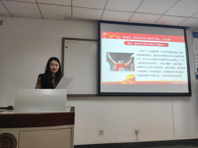 接下来支部进行了“新时代,青年学生应当如何守初心、担使命”进行了主题分享活动。首先辅导员李响引用习近平总书记在纪念五四运动100周年大会上的讲话“国家的希望在青年。民族的未来在青年”开始本次活动,并通过六个身边的案例,展示了新时代中国青年应该如何守初心、担使命。紧接着党支部书记刘铮针对如何将使命落实下去与支部成员做了分享。