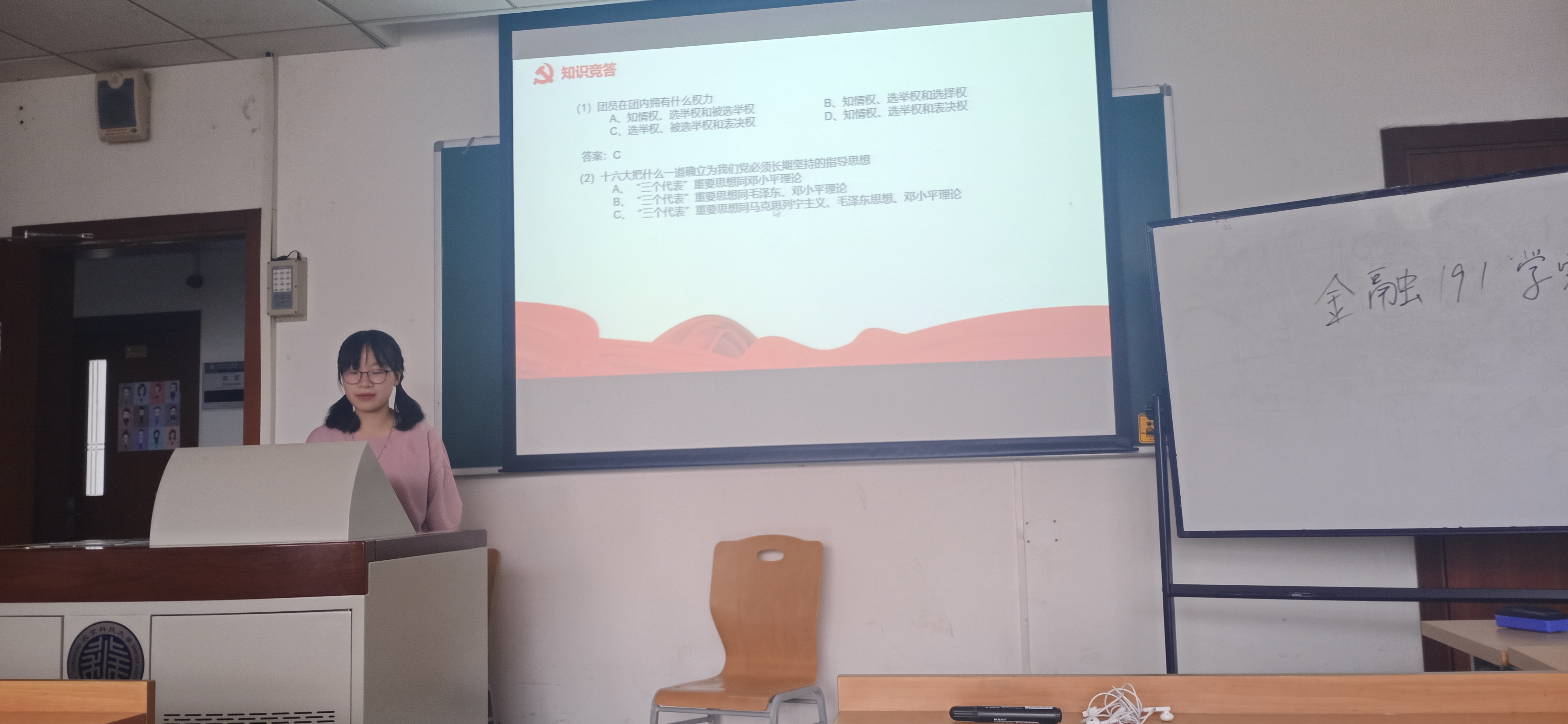 2021年5月13日15:20,金融191团支部建党一百周年系列活动之“学党史 强信念 跟党走”主题团日活动在7026威尼斯官网510召开。活动由金融191团支书马一鸣同志主持,全体金融191团支部成员到场参与。
