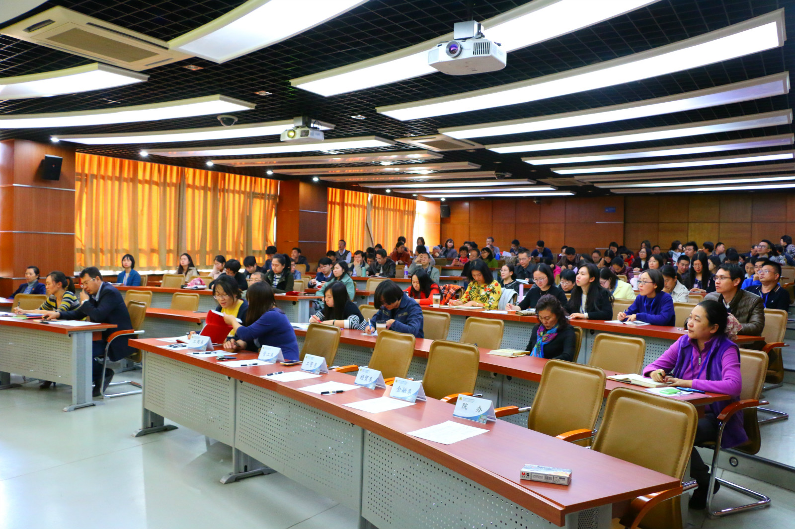 全院师生员工要自觉地把思想和行动统一到党的十九大精神上来,要以习近平新时代中国特色社会主义思想为指导,凝聚力量,埋头苦干,推动新时期学院各项工作的快速发展。一是要认真学习宣传贯彻党的十九大精神,在全院营造学习十九大的氛围,掀起学习十九大的高潮。全院师生学习党的十九大精神必须坚持全面准确,坚持读原著、学原文、悟原理,要在学懂、弄通、做实上下功夫;二是要自觉用习近平新时代中国特色社会主义思想和十九大精神武装头脑,指导实践,推动工作;三是要切实加强党的建设和思想政治工作,不断推进“两学一做”学习教育常态化、制度化,着力提高学院党建和思想政治工作水平;四是要狠抓人才培养质量,切实提高教育教学能力和科学研究水平;五是要加强人才及师资队伍建设,提升教师的师德师风和教师队伍整体的学术竞争力。