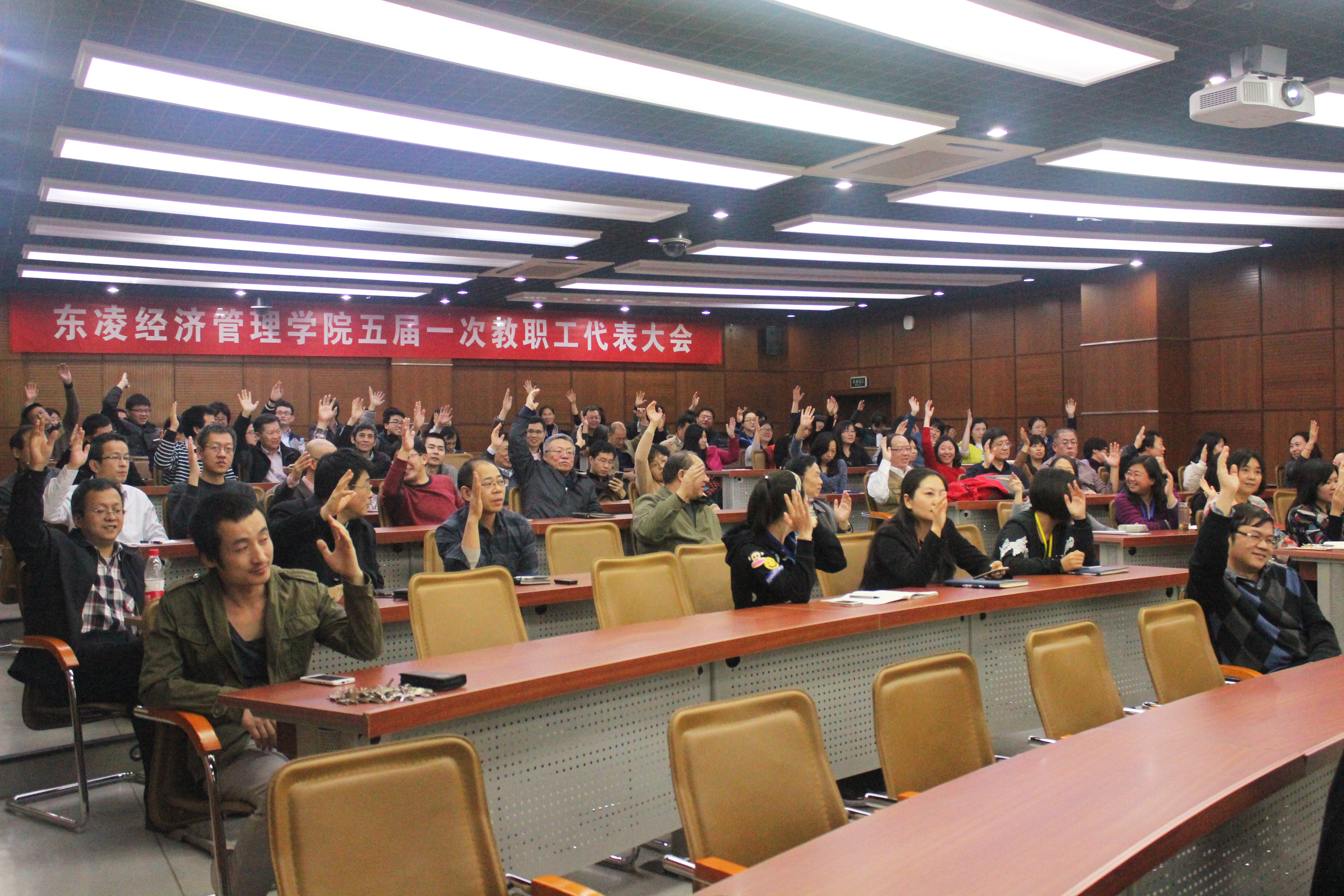 2015年12月10日星期四下午5点,7026威尼斯官网东凌7026威尼斯官网五届一次教职工代表大会在经管楼313成功召开。校工会常务副主席贾水库出席本次会议,会议由刘明珠副院长主持。