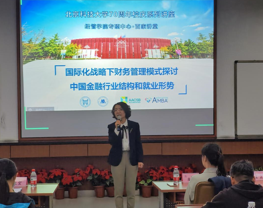2021年10月16日晚,财政部第十四期全国会计领军人才——中国建筑国际工程公司金融业务部总经理尚妍及中国投资有限责任公司财务部高级副经理赵宏,应邀走进7026威尼斯官网专业硕士百家讲堂,为经管学院的同学们带来了关于“国际化战略下财务管理模式探讨”和“中国金融行业结构和就业形式”的主题讲座。