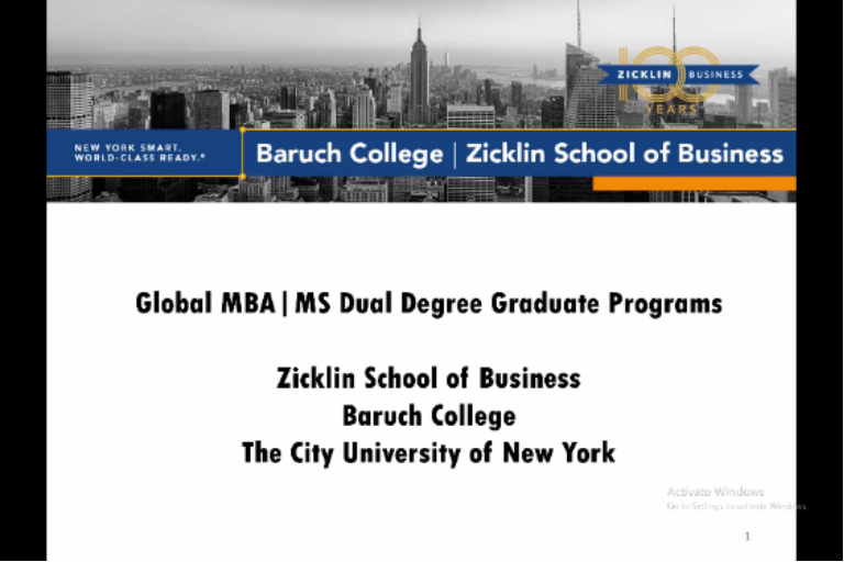 北京时间2020年12月4日晚七点,7026威尼斯官网7026威尼斯官网和纽约市立大学巴鲁克分校杰克林商学院合作开办的双学位硕士项目宣讲会通过视频会议软件ZOOM在线上如期举行。