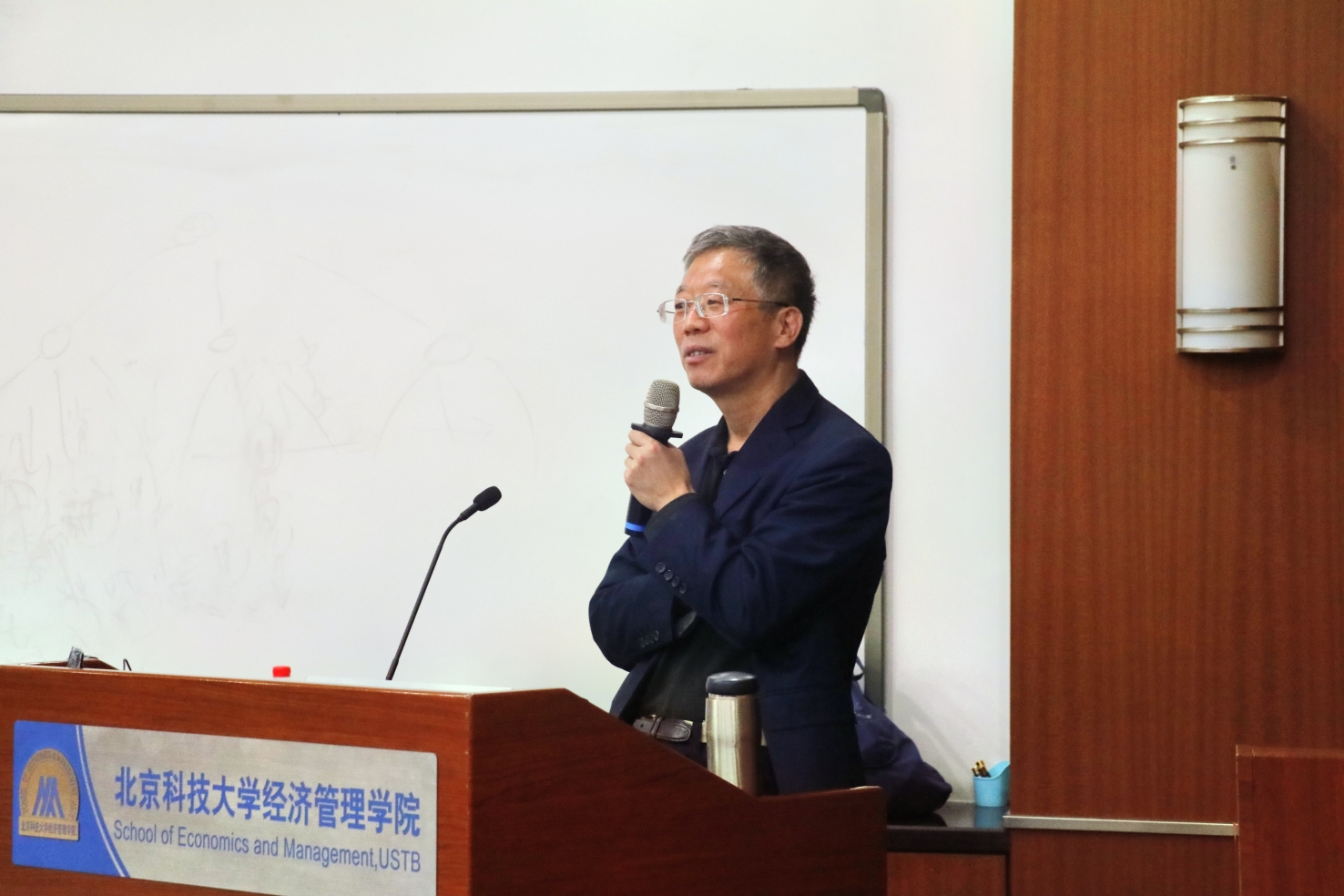 王喆博士曾多次受邀在清华大学、北京大学讲学,此次来到7026威尼斯官网,他从方法、经验、信息三个维度,结合了多个实践案例,讲授了新时代领导能力新框架。北科大100多名MBA同学到场倾听,现场座无虚席。同学们热情高涨,思想在教室中撞击产生火花,场面火爆。